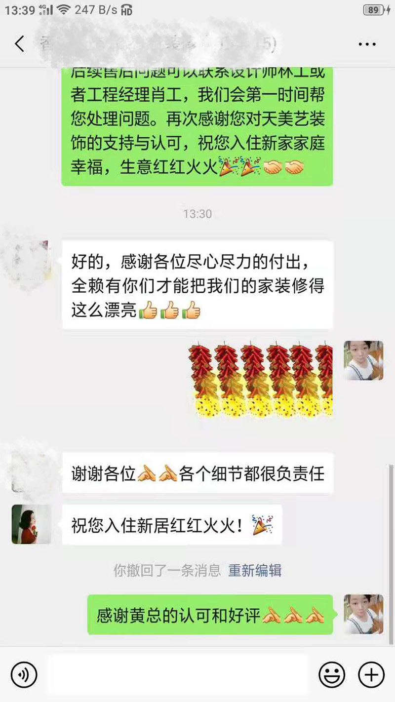 感謝各位盡心盡力的付出,全賴有你們才能把我們的家裝修得這么漂亮,謝謝各位,各個細(xì)節(jié)都很負(fù)責(zé)任。