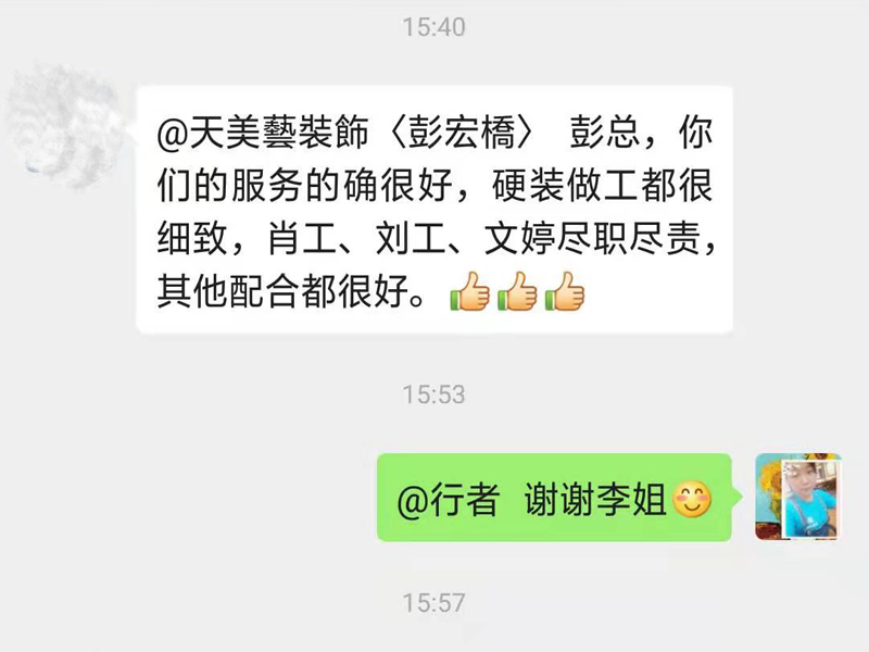 你們的服務(wù)的確很好,硬裝做工都很細(xì)致,肖工、劉工、文婷盡職盡責(zé),其他配合都很好。