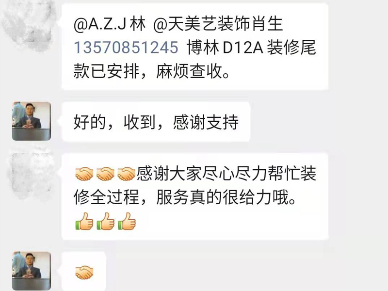 感謝大家盡心盡力幫忙裝修全過(guò)程,服務(wù)真的很給力哦。